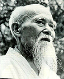 De regreso a Tanabe, Morihei oyó que el líder de la floreciente y nueva religión Ohoto-KyoShinto, llamado OnisaburoDeguchi, famoso por sus técnicas de meditación ChikonKishin (calma del espíritu y vía de acercamiento a la comunicación con el espíritu divino de Kami), estaba viviendo en Ayabe, cerca de Kyoto. Morihei decidió visitarle y pidió a Nosaburo que rezase por su padre, a lo que este le contestó “tu padre está bien como está”. Estas palabras hicieron honda impresión en Morihei.