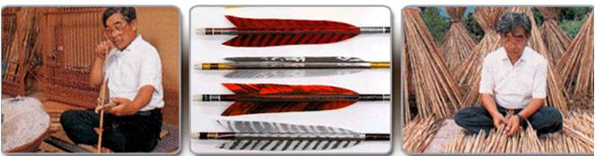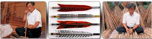 Tradicionalmente eran de materiales naturales, con el cuerpo o fuste "ya notake" de bambú, y las plumas "yanoha" eran de águila. En la actualidad al estas estás aves protegidas, se usan plumas de otras aves, como oca, pavo o cisne.